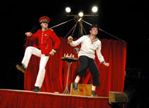 Cie Qualité Street La Fleur au fusilCréation 2004 / Théâtre de rue (Rennes 35) 50 min Engoncés dans les codes stricts de la mentalité militaire, un adjudant et son subalterne se livrent à l’exercice périlleux du récital en public. En peu de temps, la Bossa-nova remplace le clairon, et le képi prend vite fait la forme d’un nez rouge... Un spectacle aux coups de génie burlesques et aux rebondissements cadencés, rythmé par des personnages follement tiraillés entre codes de conduite et candeur poétique. >> http://www.qualitestreet.com |