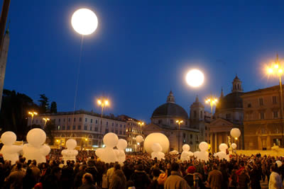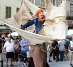 Peu à peu les cinq personnages se métamorphosent en personnages volumineux de 4 m de haut. Difformes et majestueuses à la fois, pataudes et aériennes, comme venues d'une autre planète, leurs têtes deviennent lumineuses.