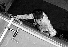 le long d'un mur, suspendus chacun à une corde