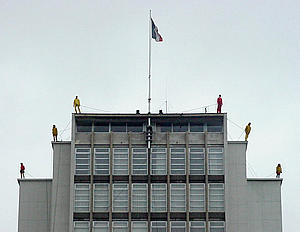 ont attaché des cordes en haut de la mairie pour descendre et pouvoir