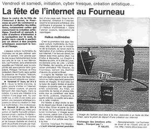 de Marseille Taktik Tél. : 04 91 92 65 65 Brest, Les Haïkus multimédias au Fourneau Rue couverte Del@rue, tout près du port de commerce, dans lEspace Culture Multimédia du Fourneau. Une vingtaine de machines attendent les visiteurs. Pour la fête de lInternet, elles ont remplacé les artistes : lieu de création, le Fourneau accueille toute lannée des compagnies de théâtre de rue en résidence. Art et multimédia, le Fourneau sait créer des liens entre les deux. Avec 3 autres lieux en France, La friche à Marseille, Culture commune près de Lille et Chapelin de Mantes-la-Jolie, Le Fourneau propose, à loccasion de la fête de linternet une création interactive de haïku multimédia sur le principe du cadavre exquis. Haïkus multimédias Vendredi 17 mars