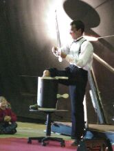 Beaucoup de drôlerie dans les sketches de ce personnage maladroit mêlant jonglerie, fil-de-fer et numéros de prestidigitation. Une succession d'erreurs et de maladresse, saupoudrée d'un zeste de performance. Hilarant ! |