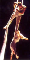 Spectacle aérien et musical Saviez-vous que les cordes ont une âme en leur sein ? Dans cet interstice entre ciel et terre ça se tisse ça s'emberlificote les petites histoires... Qu'est-ce qu'on tricote... rien ou pas grand chose, sinon l'âme d 'une rencontre suspendue. Un homme et une femme une main se lâche une main récupère les sons démêlent.